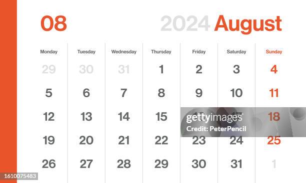 August 2024 Monthly Calendar Minimalism Style Landscape Horizontal