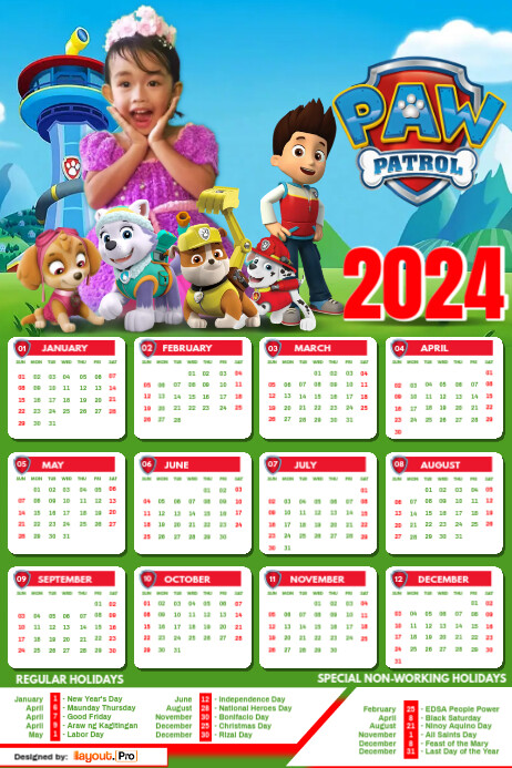 Modèle Paw Patrol Calendar 2024 | PosterMyWall